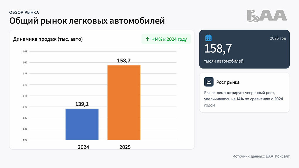 Прошедший год стал для автомобильного рынка Беларуси одним из самых противоречивых и интересных за последнее десятилетие. По данным Автомобильной ассоциации БАА, общий объём рынка достиг 158,7 тысячи автомобилей, что на 14% больше, чем годом ранее. Однако за внешним ростом скрываются принципиальные изменения в структуре продаж, каналах импорта, распределении долей между официальными дилерами, частными покупателями и местными производителями.