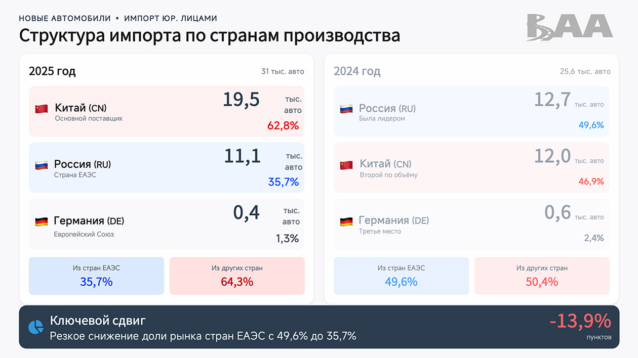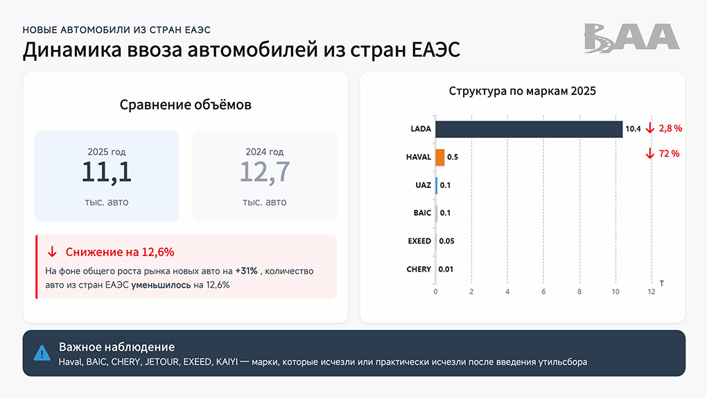 Официальная статистика БАА теперь базируется не только на данных участников ассоциации, но и на системе электронных паспортов транспортных средств (ЭПТС). Это новшество позволило учесть все поступающие на учёт автомобили, включая импортируемые физическими лицами, которые в 2025 году стали ключевыми игроками рынка.