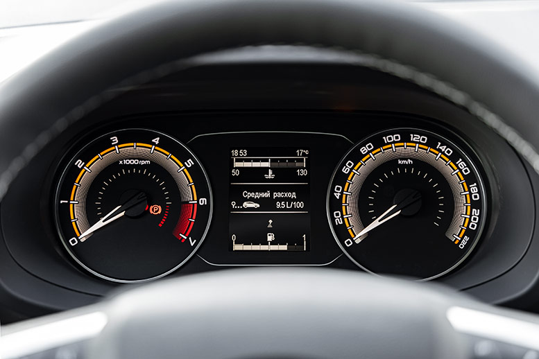 Приборная панель у всей линейки Iskra даже в максимальной комплектации аналоговая, зато выглядит современно и информативно, а все данные расположены в привычных местах.