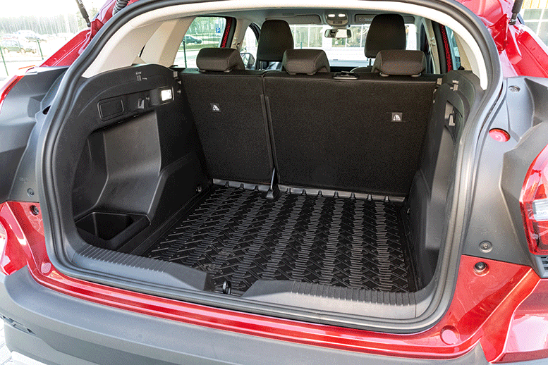 Объем багажника до шторки в LADA Iskra SW Cross составляет 480 литров. При сложенных спинках задних сидений объем увеличивается до 1965 литров, создавая вместительный отсек для перевозки крупногабаритных вещей. Под полом находится полноразмерное запасное колесо и органайзер для инструментов. Также для версий SW и SW Cross доступен двухсторонний складной коврик багажника, защищающий спинки сидений при перевозке грязных грузов.