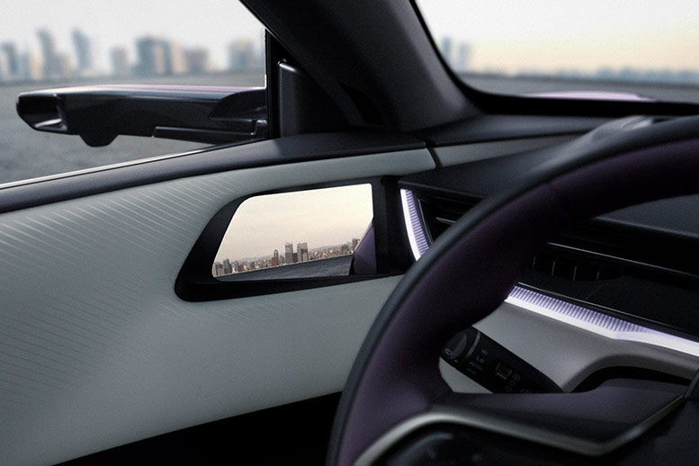 Одной из ключевых инноваций Mazda EZ-60 являются электронные боковые зеркала, данные с которых выводятся на экраны у стоек лобового стекла, и цифровое зеркало заднего вида. Система не просто заменяет традиционные зеркала – она умнее. На высоких скоростях она автоматически расширяет угол обзора, а при маневрах подсвечивает слепые зоны.