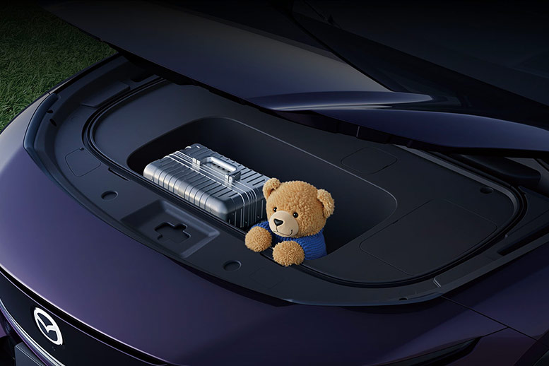 Объём багажного отделения до шторки у Mazda EZ-60 составляет 549 л, при полностью сложенных спинках задних сидений – 2036 л. Боковые стенки багажника полностью закрыты карпетом. У чисто электрической версии спереди имеется дополнительный франк на 126 литров.